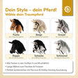 DESIGN: Liebevoll gestalteter Pferdekopf mit langer frisierbarer Mähne, handgefertigten Nähten und detailreichem Ausdruck – ein echter Blickfang!