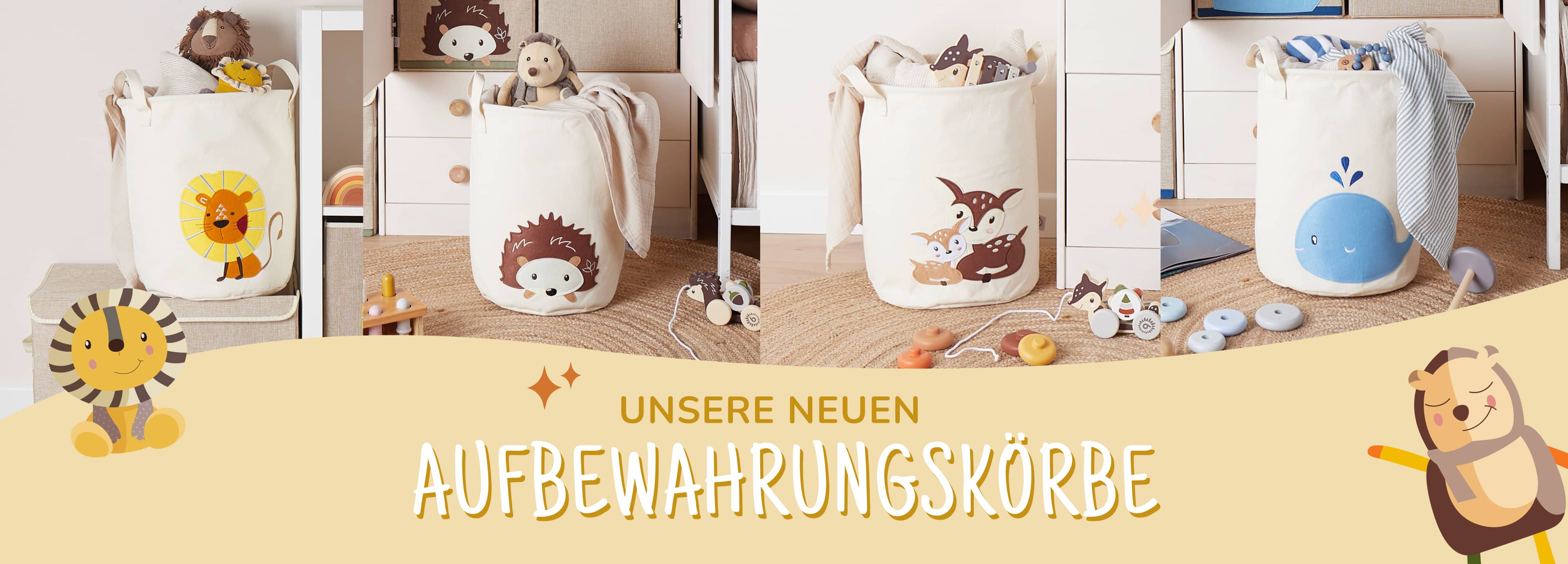 Nos boîtes de rangement pour chambre d’enfant sont disponibles dans différents designs et s’intègrent dans toutes les chambres d’enfant. Avec un faon ou un hérisson : chaque enfant trouvera le panier de rangement qui lui convient.