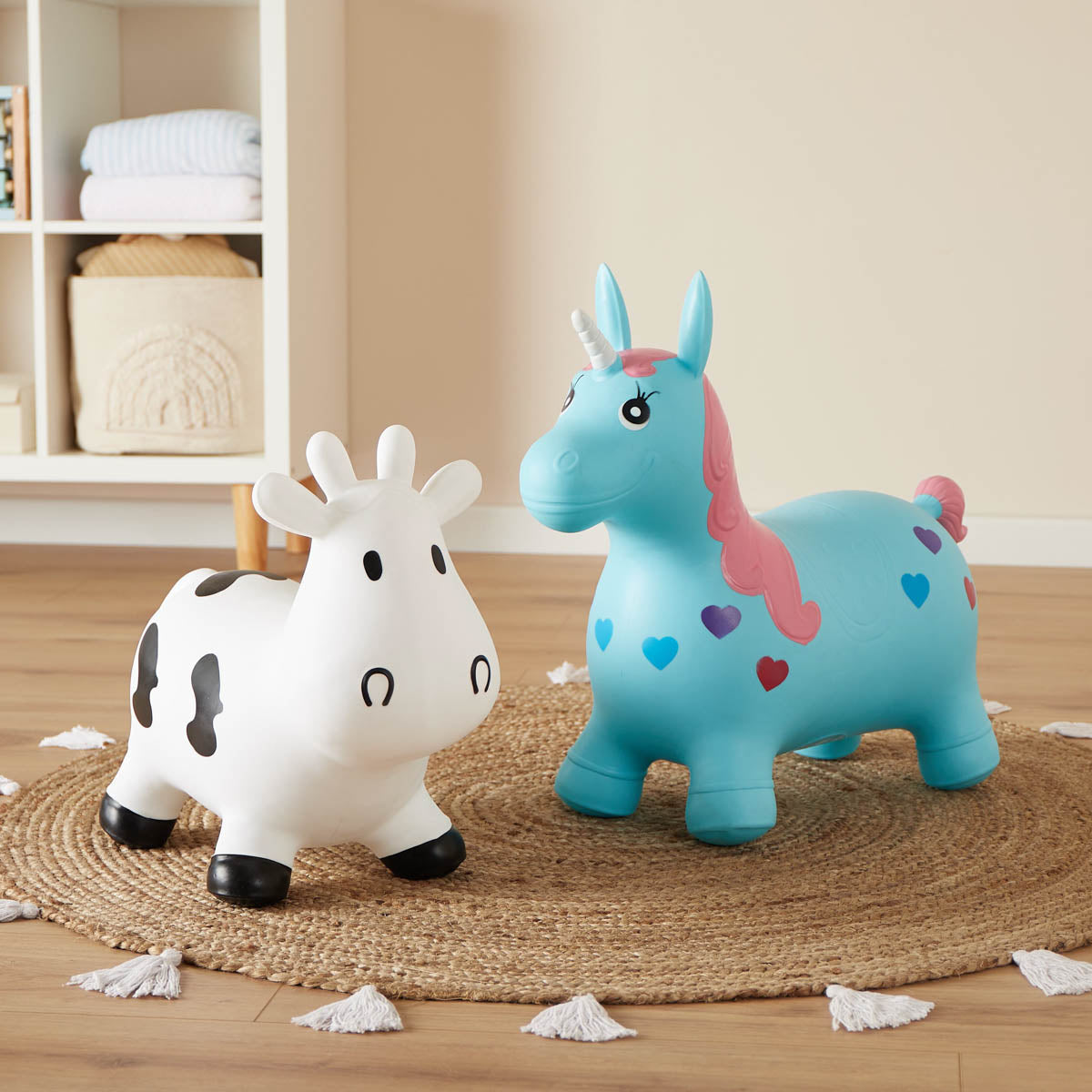 À vos marques, prêts, partez ! Avec un jouet rebondissant, votre enfant s'amusera énormément et améliorera sa coordination. Que diriez-vous d'une course rebondissante ? Votre enfant peut s'agripper fermement aux cornes ou aux oreilles, ce qui lui donne un contrôle total sur le jouet rebondissant. Rebondir est également très amusant à l'extérieur, dans le jardin.
