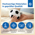 Le ball en velours football avec hochet est le tout premier jouet idéal pour les bébés et les tout-petits : grâce à sa surface en velours toute douce, il se laisse particulièrement bien attraper par les petites mains et invite à rouler, lancer et ramper après lui. Le hochet à l’intérieur rend le jeu encore plus captivant et stimule l’ouïe – ainsi, ton enfant reste curieux et a envie de découvrir encore et encore. Et en plus, ce ballon accompagne le développement de ton enfant tout en douceur : la motricité globale et fine, le sens du toucher, la vue (couleurs & motifs) et la coordination sont soutenus de manière adaptée à son âge.
