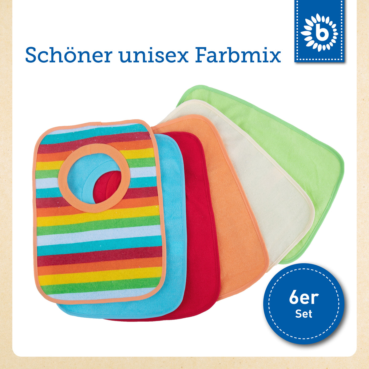 | Ces jolis bavoirs à enfiler de Bieco apportent une touche de joie colorée à table. Le set comprend six bavoirs au design joyeux et plein de couleurs. Ces bavoirs conviennent aussi bien aux petits garçons qu’aux petites filles.