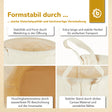 - Polyvalent : Le revêtement PE imperméable à l’intérieur offre une bonne résistance à l’humidité. Le panier peut ainsi aussi servir de panier à linge.