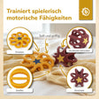 La forme ouverte de la balle et ses différentes surfaces invitent à attraper, toucher et malaxer – ton bébé entraîne ainsi, en jouant, sa motricité fine et sa coordination main-œil. -