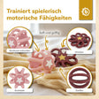 La forme ouverte de la balle et les différentes surfaces invitent à attraper, toucher et malaxer – votre bébé entraîne ainsi, en jouant, la motricité fine et la coordination main-œil. -
