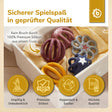 Chaque balle mesure env. Ø 7 cm et est agréablement légère (env. 45 g) – idéal pour que même les bébés puissent la tenir et la manipuler de façon autonome. -
