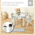 Insieme, la squadra perfetta: Questo bundle con due tavoli e quattro sedie offre ai tuoi bambini l’ambiente ideale per attività creative e di gioco. Che sia in casa o all’aperto, con questo set la fantasia non ha limiti.