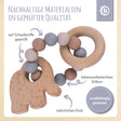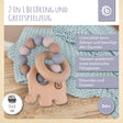 L’anello da dentizione in silicone con il dolce elefantino di Bieco è il supporto perfetto durante la dentizione del tuo bambino. L’anello da presa è facile da afferrare e da mordicchiare. Il silicone morbido è particolarmente piacevole tra le manine del tuo piccolo tesoro e le diverse superfici invitano a prendere, sentire e toccare. Come aiuto per la dentizione, rafforza il palato del tuo bebè e aiuta ad alleviare il dolore. L’anello in silicone e l’elefantino possono essere fatti scorrere l’uno nell’altro all’infinito, favorendo in modo giocoso la motricità fine del tuo bambino. Le palline tintinnano dolcemente sul legno quando l’anello da presa viene scosso, stimolando anche l’udito. Il design discreto nei toni sabbia rende questo giocattolo educativo per bebè un compagno alla moda che conquista genitori e bambini.