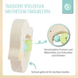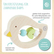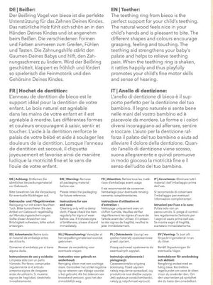 L’anello da dentizione Uccellino di Bieco è il supporto perfetto durante la dentizione del tuo bambino. Il legno naturale e il morbido silicone sono piacevoli tra le sue manine e confortevoli da mordicchiare. Le diverse superfici invitano ad afferrare, sentire e toccare. Questo aiuto per la dentizione rafforza il palato del tuo bebè e aiuta ad alleviare il dolore da dentizione. Se l’anello da dentizione viene scosso, produce un allegro sonaglio e favorisce in modo giocoso la motricità fine e l’udito del tuo bambino. Il design delicato rende questo gioco educativo un compagno alla moda che conquista genitori e bimbi.