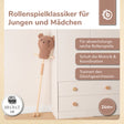 L’orso Mika porta un magico divertimento in ogni cameretta. Questo dolce animaletto del bosco invita al gioco fantasioso e al movimento, perché gli animali con bastone sono molto più di un semplice giocattolo! Offrono tantissime possibilità per giochi di ruolo, momenti di socialità e attività fisica – tutto in un unico gioco. In casa o all’aperto, l’orso Mika è il compagno perfetto per una cavalcata nel bosco incantato. Grazie alle maniglie laterali, l’animale con bastone si impugna alla perfezione e le due ruote permettono inoltre uno spostamento facilissimo per i più piccoli, rispettando anche il pavimento. Il bastone di Mika si può dividere a metà: così diventa compatto e può essere portato ovunque.