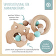 L’anello da dentizione in silicone con il dolce gufo di Bieco è il supporto perfetto durante la dentizione del tuo bimbo. L’anello da presa è facile da afferrare e da mordicchiare. Il silicone morbido è particolarmente piacevole tra le manine del tuo piccolo tesoro e le diverse superfici invitano a prendere, sentire e toccare. Come aiuto per la dentizione, rinforza il palato del tuo bebè e aiuta ad alleviare il fastidio dei dentini. L’anello in silicone e il gufo si possono far scorrere l’uno nell’altro all’infinito, favorendo in modo giocoso la motricità fine del tuo bambino. Le perline tintinnano delicatamente sul legno quando l’anello da presa viene scosso: così si stimola anche l’udito. Il design discreto nei toni menta e sabbia rende questo giocattolo educativo per bebè un compagno alla moda, che conquista genitori e bimbi.