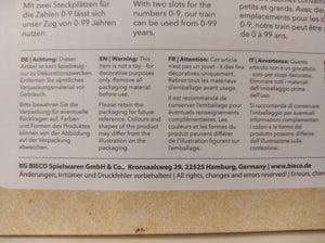 Il bellissimo trenino di compleanno Bieco per bambini è l’aggiunta perfetta a qualsiasi tavola di compleanno. Il trenino di compleanno con candele, composto da 27 pezzi, include una locomotiva e 6 vagoni a forma di simpatici animaletti. I singoli elementi si agganciano e si collegano tra loro tramite occhielli in metallo. I primi due vagoni sono dotati di un alloggiamento per i numeri inclusi nel set. Ogni vagone (6x) ha un supporto per una candela di compleanno (standard). La sequenza dei singoli vagoni può essere scelta liberamente, ad eccezione del primo animaletto del treno (locomotiva). Il trenino di compleanno è realizzato in legno ed è particolarmente pregiato, con un design cromatico armonioso e moderno. I colori sono naturalmente a base d’acqua e privi di sostanze nocive. Che siano 0 o 99 anni, trenino di compleanno per bimba o per bimbo: questo trenino di compleanno con candele accompagna le feste di tutta la famiglia!