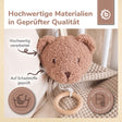 Molto più di un semplice aiuto per far addormentare il tuo bebè. Il dolcissimo orsetto Mika suona la meravigliosa melodia della ninna nanna di Brahms, conosciuta anche come „Guten Abend, gut' Nacht“. È anche super morbido e soffice: perfetto non solo da ascoltare, ma anche da stringere, afferrare e toccare. Il tuo bambino amerà questo orsetto! Aiuta il tuo piccolo tesoro a trovare un sonno tranquillo e a cullarsi in sogni sereni. Il carillon per bebè si carica facilmente tirando l’anello in legno. Grazie ai pratici nastri, Mika si può fissare ovunque. Un compagno pieno d’amore fin dalla nascita.