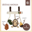 Il grazioso ciondolo universale di Bieco è perfetto come catenella per passeggino, gioco per ovetto, gioco per buggy oppure per il box e come elemento di gioco per un trapezio gioco. Ha pratiche chiusure in velcro per il fissaggio e si può quindi attaccare facilmente e velocemente ovunque. Così il dolce riccetto può accompagnare il tuo bebé dappertutto. I materiali di alta qualità lo rendono morbidissimo e coccoloso. È progettato con forme e funzioni diverse che allenano la motricità e la percezione sensoriale del tuo bebé. Le foglie frusciano quando vengono afferrate, il riccio sonaglia dolcemente e la ghianda squittisce allegramente quando viene premuta.