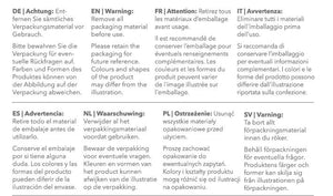 - Pulire con un panno umido e sapone delicato. Non immergere in acqua. Asciugare all’aria.