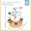 Il piccolo labirinto di motricità di Bieco scaccia via la noia in un attimo. Progettato a misura di bambino, con forme e colori diversi che stimolano i sensi. Le dolcissime perline in legno a forma di cerbiatto e riccio danno anche libero spazio alla fantasia. Quando il tuo bimbo fa scorrere le piccole perline di legno lungo la guida in metallo, migliora attenzione e concentrazione e, allo stesso tempo, allena in modo giocoso la motricità fine del tuo piccolo tesoro. Il labirinto di motricità è realizzato in modo robusto in legno e metallo, così il tuo bambino potrà divertirsi a lungo. Il design delicato rende questo gioco educativo un compagno alla moda che conquista genitori e bambini. Grazie alle sue dimensioni particolarmente maneggevoli è ideale da portare dai nonni o nella prossima vacanza.