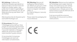 - Avvertenze: Attenzione, da utilizzare sotto la sorveglianza di un adulto.