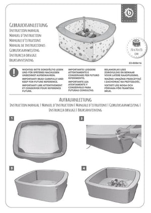 - Contenuto della confezione: 1 piscina di palline, 50 palline, 4 aste, 1 manuale di montaggio