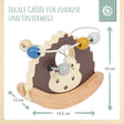 La pista per motricità con dondolo di Bieco scaccia via la noia, garantito. Progettata a misura di bambino, con forme e colori diversi che stimolano i sensi. Il dolce cerbiatto accende anche la fantasia. Quando il tuo bimbo fa scorrere le piccole perline in legno lungo il binario in metallo, migliora attenzione e concentrazione e, allo stesso tempo, allena in modo giocoso la motricità fine del tuo piccolo tesoro. E come tocco speciale, la pista per motricità è abbinata a un dondolo: ancora più divertimento! È realizzata in modo robusto in legno e metallo, così il tuo bimbo potrà goderne a lungo. Il design discreto rende questo gioco educativo un compagno di stile che conquista genitori e bambini. Con dimensioni di circa 14,5x12x16 cm, questo gioco in legno per bebè è piuttosto compatto ed è ideale da portare dai nonni o in vacanza.