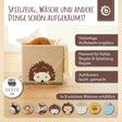 Questa bella scatola portaoggetti per bambini di Bieco porta ordine nella cameretta. La scatola decorativa è quadrata e si può usare senza problemi come scomparto per lo scaffale IKEA Kallax. Se la scatola portaoggetti non serve, si può semplicemente piegare e riporre nell’armadio occupando pochissimo spazio. Grazie alle maniglie laterali, si trasporta con estrema facilità. Con una capienza di circa 33 litri, questa bella scatola offre tanto spazio per i giochi preferiti, i vestiti e tante altre cose: riordinare diventa davvero semplice. Scopri anche le nostre altre scatole portaoggetti grandi e piccole per la cameretta, con altri motivi dolcissimi.
