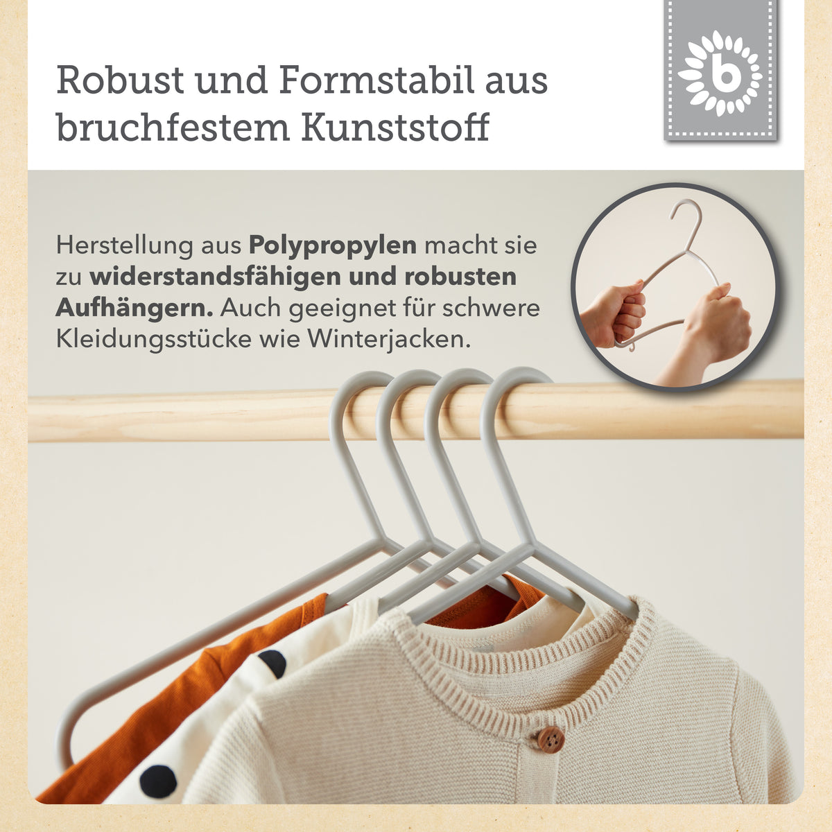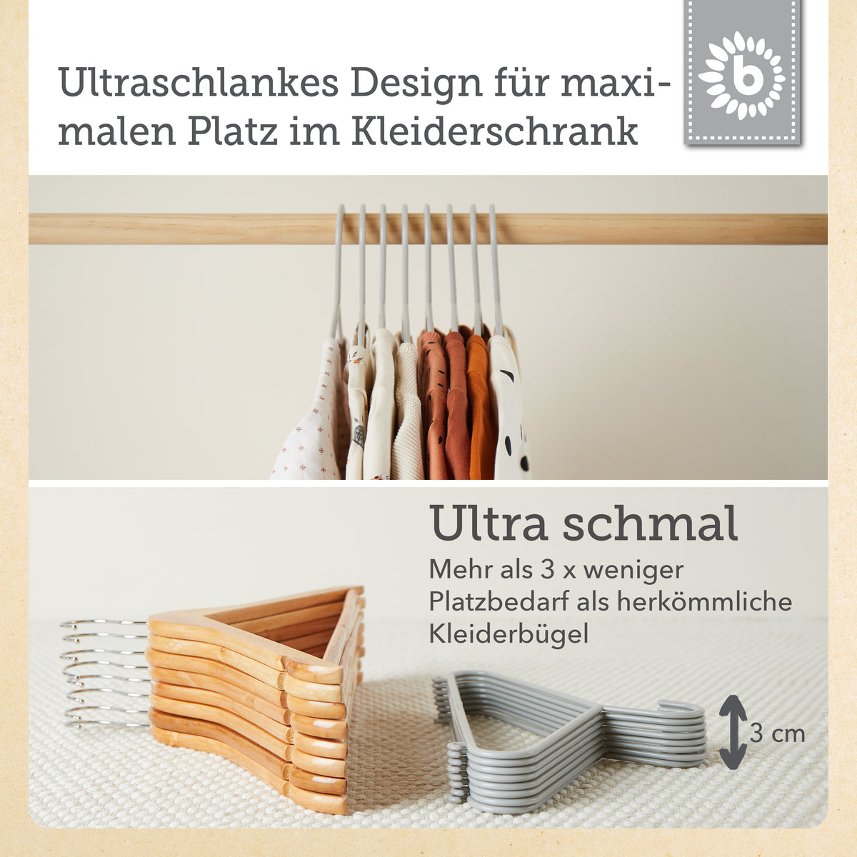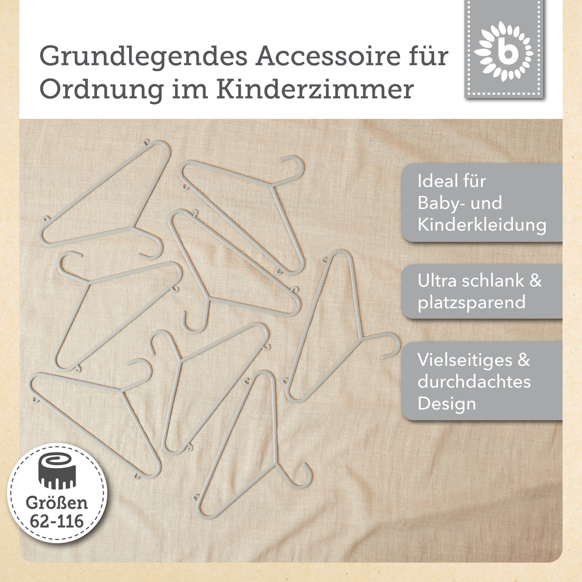 Metti ordine nell’armadio dei più piccoli: con le grucce per bebè extra sottili e leggere di Bieco, anche i bimbi si divertono ad appendere giacche, maglioncini, vestitini e pantaloni. Le grucce per bambini sono disponibili in tanti colori diversi e sono perfette per appendere i vestiti dei bimbi o anche gli abitini delle bambole. Grazie alla barra per pantaloni e ai due ganci laterali, appendere i capi diventa davvero facilissimo. Realizzate in plastica di alta qualità, sono leggerissime ma molto stabili. Per questo non sono solo un must have in ogni cameretta, ma sono ideali anche in viaggio: così è sempre tutto ben organizzato. Con una lunghezza di circa 30 cm, possono essere usate a lungo per capi di diverse taglie.