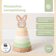 La piramide a incastro Bieco unisce un design dolcissimo e splendidi colori in stile scandinavo a legno di alta qualità ed è adatta ai bambini a partire da 12 mesi. Giocando con la torre impilabile, si allenano la destrezza e la motricità fine del tuo bimbo. Il legno, lavorato con grande cura, del gioco a incastro è particolarmente piacevole tra le manine del tuo piccolo tesoro. I 5 anelli si possono ordinare per grandezza e vanno infilati sull’asta in legno. Per finire, la testina del dolce coniglietto può essere inserita sulla punta del gioco di incastri. L’asta centrale in legno è fissata saldamente alla base, ma può essere ripiegata: un dettaglio pensato per la sicurezza. Il design delicato rende questo gioco educativo un compagno davvero stiloso, capace di conquistare grandi e piccini.