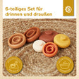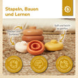Set impilabile da 6 pezzi in 100% silicone. Il giocattolo educativo perfetto per coordinazione e motricità fine, riconoscimento dei colori e per la vasca da bagno. Il silicone è resistente, infrangibile e facile da pulire con acqua e sapone delicato.
