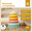Set impilabile da 6 pezzi in 100% silicone. Il gioco educativo perfetto per coordinazione e motricità fine, riconoscimento dei colori e per la vasca da bagno. Il silicone è resistente, infrangibile e si pulisce facilmente con acqua e sapone delicato.